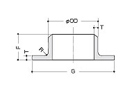 呼び徑(kg) | 5K (kg) | 10K (kg) | 外徑 OD(mm) | 厚さ T(mm) | つばの徑 G(mm) | 高さF(mm) | コーナーR(mm) | |||