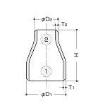 呼び徑 ①x②(mm) | 外徑(mm) | 10S厚さ(mm) | 20S厚さ(mm) | 40S厚さ(mm) | 端面から端面 までの距離(mm) | |||||