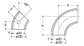 10S (kg) | 20S (kg) | 10S (kg) | 20S (kg) | 10S (kg) | 20S (kg) | 內(nèi)徑 ID(mm) | 厚さ T(mm) | 內(nèi)徑 ID(mm) | 厚さ T(mm) | 45°エルボ(ロング) H(mm) | 90°エルボ(ロング) F(mm) | 90°エルボ(ショート) F(mm) | |||
